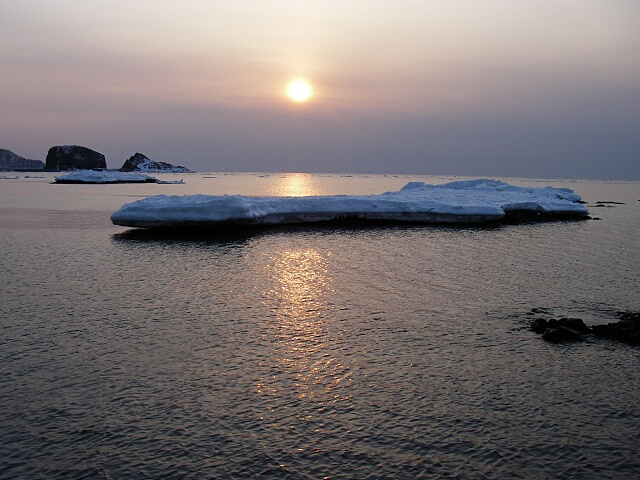 夕日と流氷