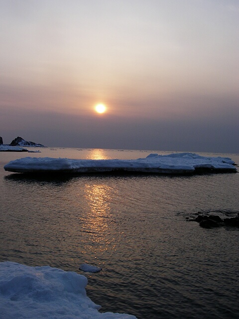 夕日と流氷